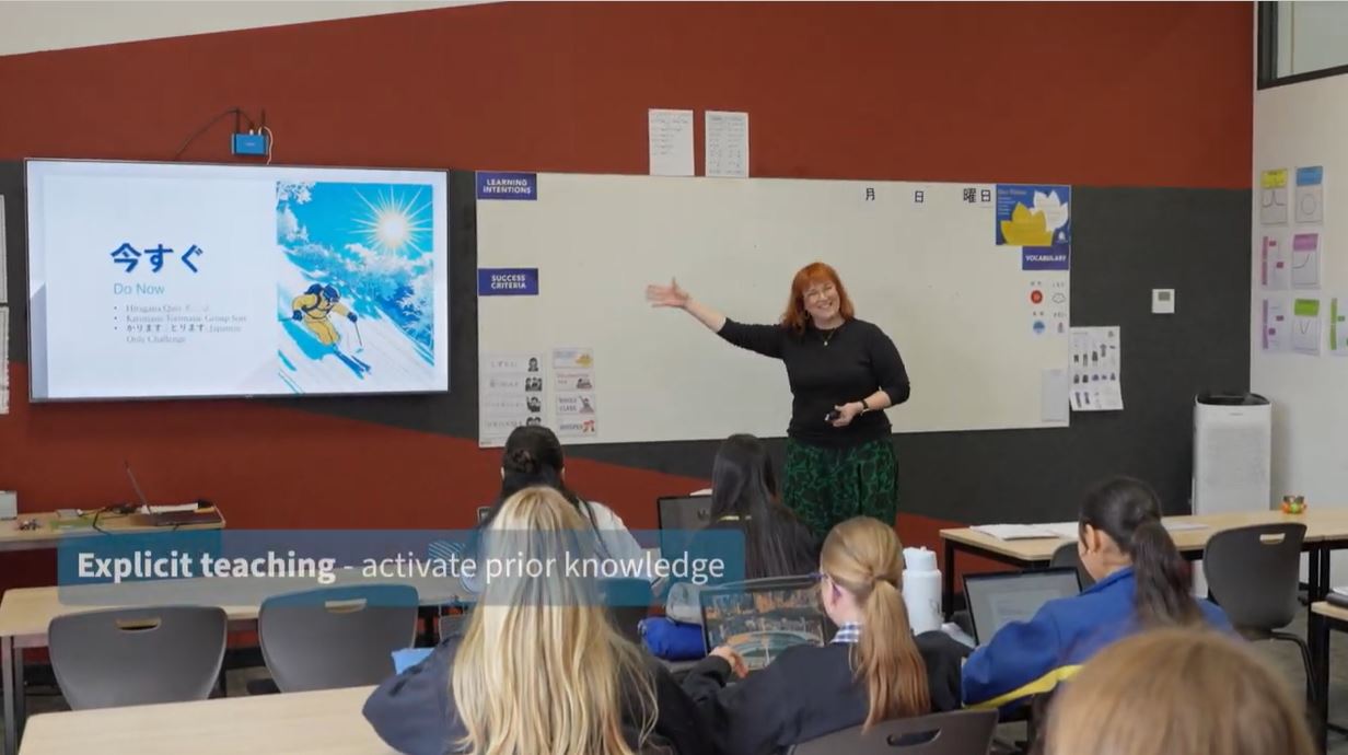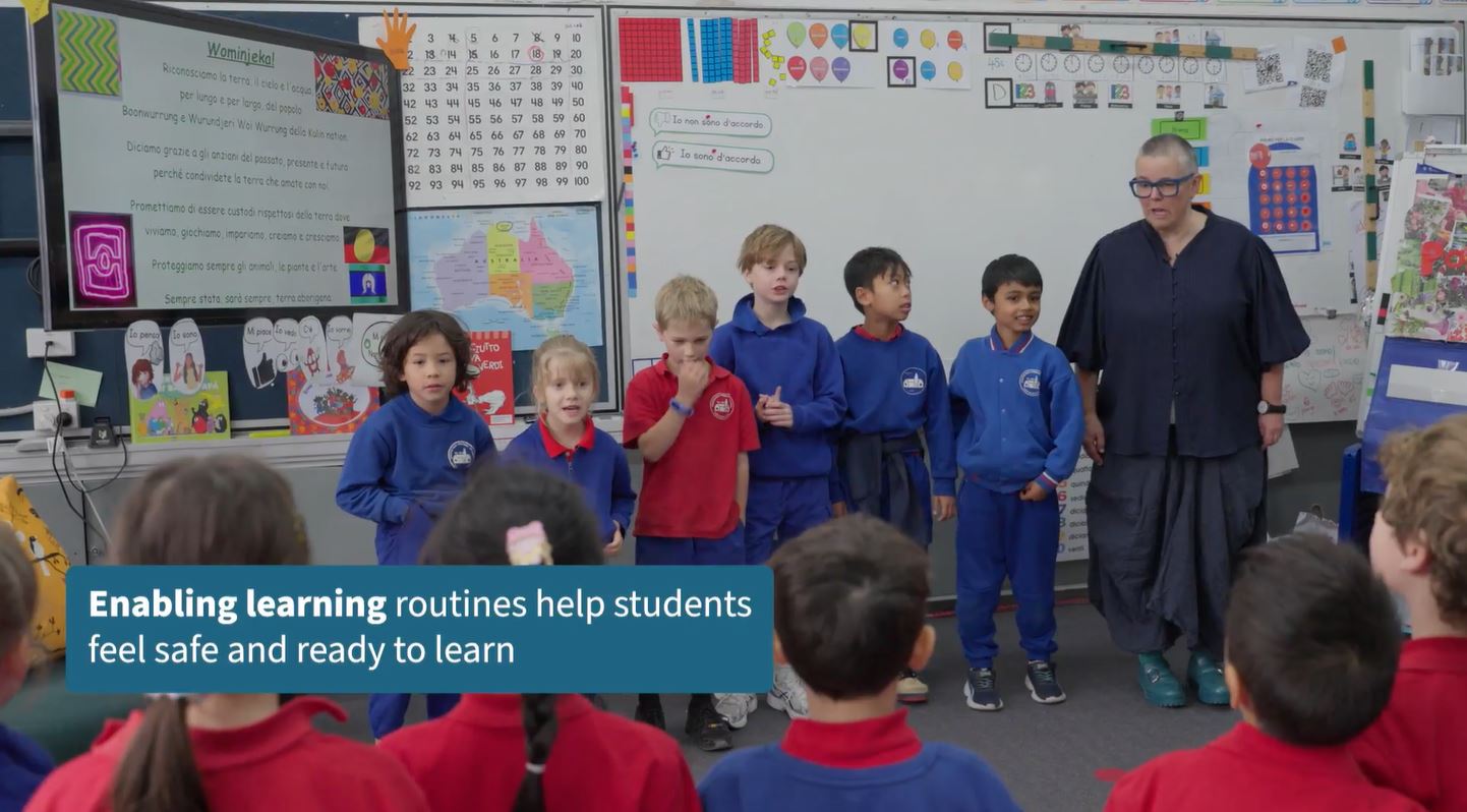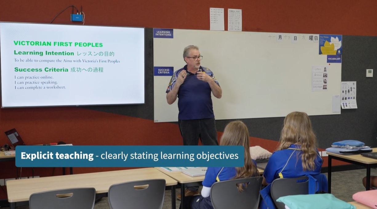 - on-screen captions identifying the Elements of Teaching from the Victorian Teaching and Learning Model (VTLM) 2.0 evident in the lesson.